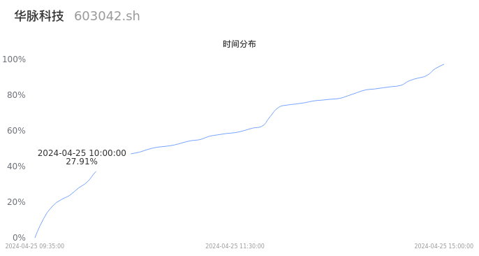 603042华脉科技2024年04月25日成交8.50万手,成交金额8531.89万元,相较昨日缩量1.83万手,换手率5.30%,成交清淡。