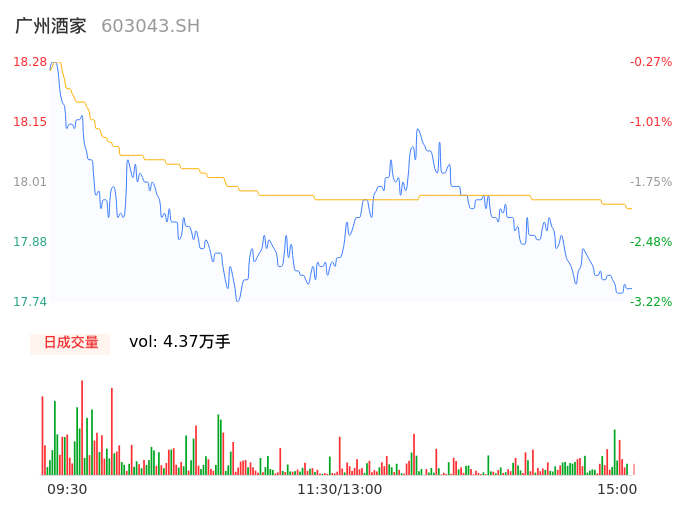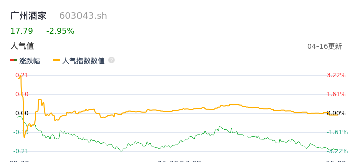 04月16日,广州酒家收报17.79,股价涨幅-2.95%,成交金额7852.45万元,换手率0.77%。