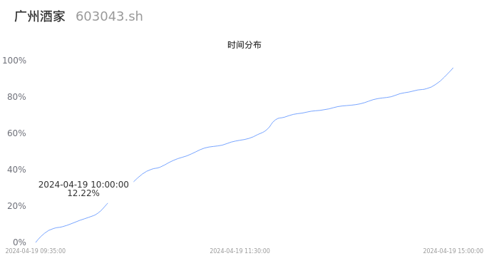 603043广州酒家2024年04月19日成交5.35万手,成交金额9759.62万元,相较昨日放量1.50万手,换手率0.94%,成交清淡。