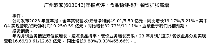 值得注意的是:2024年04月申港证券的徐广福分析师,首次发布关于广州酒家的研究报告,标题为:广州酒家(603043)年报点评:食品稳健提升 餐饮扩张高增。