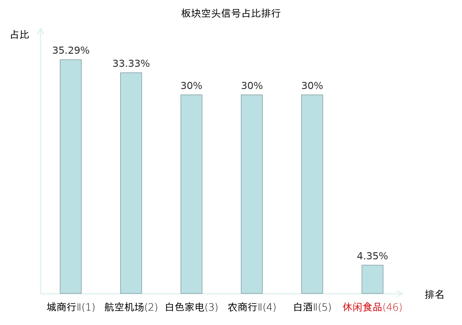 全市场所有行业板块中主力空头信号占比排名中,城商行Ⅱ板块位居第一。饮料乳品板块名次提升最快,较昨日上升106位。