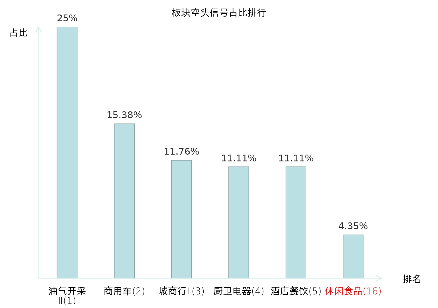 全市场所有行业板块中主力空头信号占比排名中,油气开采Ⅱ板块位居第一。包装印刷板块名次提升最快,较昨日上升101位。