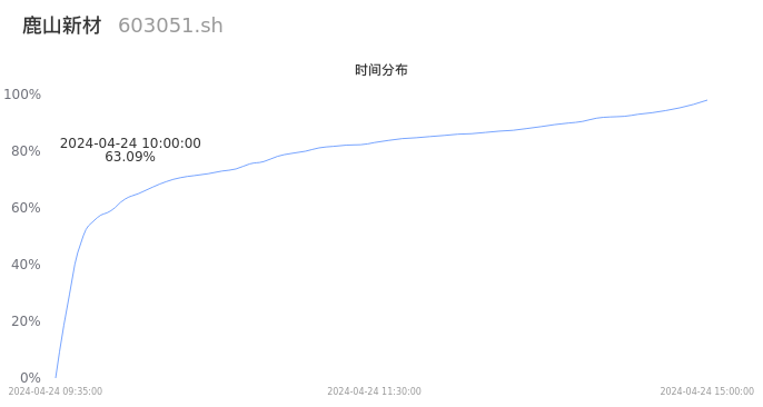 根据成交分布分析,该股票当天放量成交,成交清淡。时间上看,早盘前半小时成交量占据当天总成交量的63.09%;价格上看,成交呈现左偏峰。成交分布分析主要研究股票成交的分布特性,不具有预测功能,请知悉。