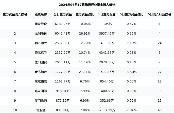 从主力资金流向来看,物流行业今日主力资金流入15.13亿元,在所有申万二级行业中排名:4/131。