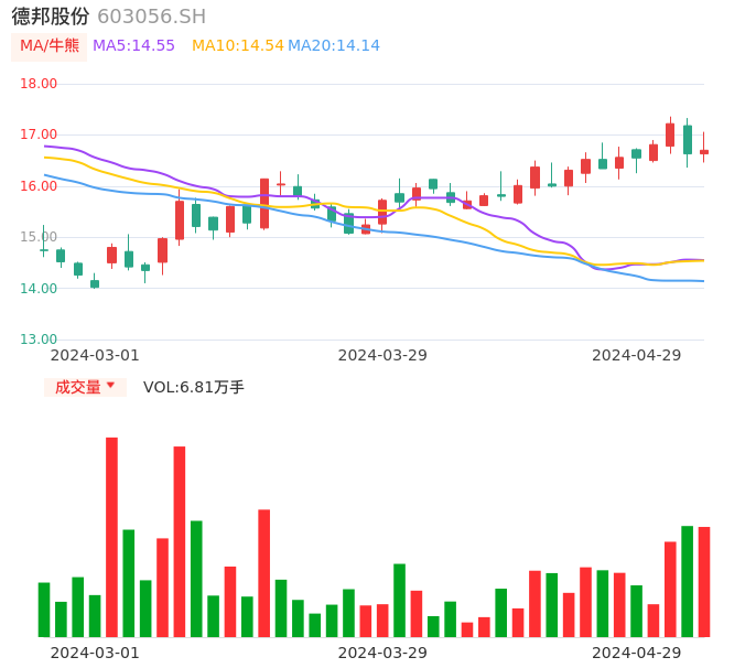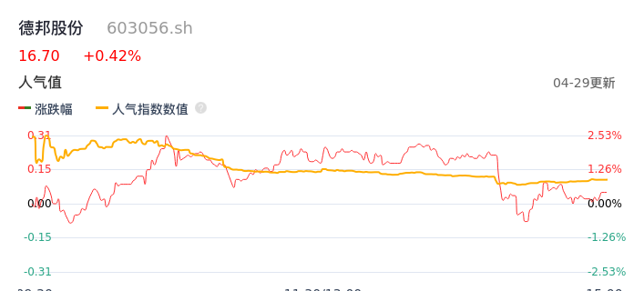 04月29日,德邦股份收报16.70,股价涨幅0.42%,成交金额1.14亿元,换手率0.66%。