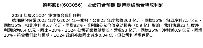 值得注意的是:2024年04月中金公司的张文杰/罗欣雨/冯启斌/杨鑫分析师,首次发布关于德邦股份的研究报告,标题为:德邦股份(603056):业绩符合预期 期待网络融合释放利润。