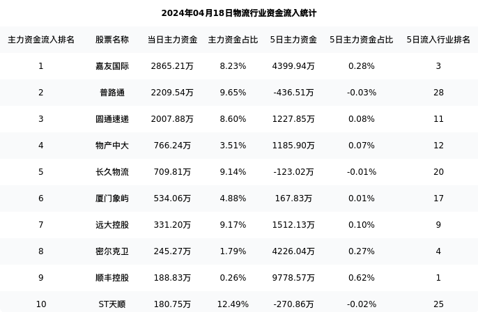 从主力资金流向来看,物流行业今日主力资金流入13.55亿元,在所有申万二级行业中排名:101/131。