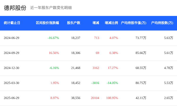 与物流行业整体数据对比,德邦股份的股东户数变化和户均持股市值变化情况表明,公司在行业内的关注度和投资者基础有所扩大,但户均持股市值低于行业平均水平,可能反映出市场对德邦股份的估值相对谨慎。