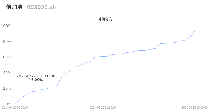 603059倍加洁2024年04月25日成交7282手,成交金额1669.88万元,相较昨日缩量2934手,换手率0.72%,成交清淡。