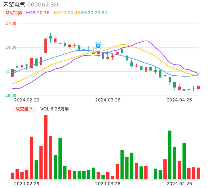 04月26日,禾望电气收报19.22,股价涨幅2.13%,成交金额1.19亿元,换手率1.41%。