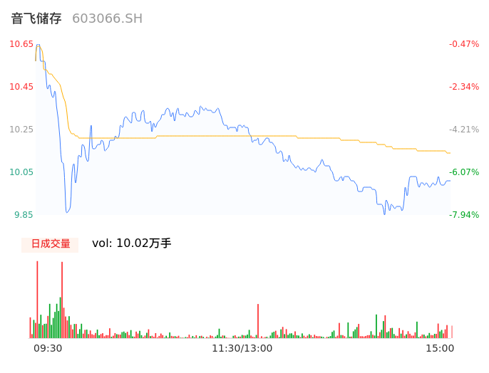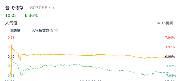 04月15日,音飞储存收报10.02,股价涨幅-6.36%,成交金额1.02亿元,换手率3.33%。