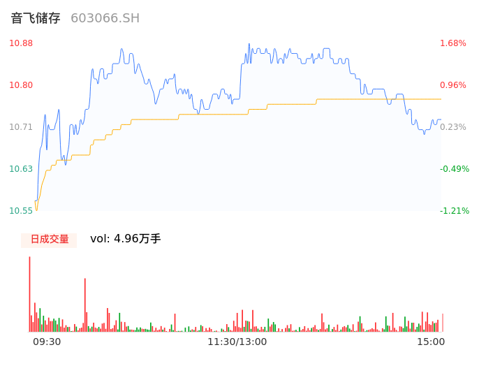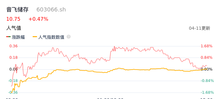 04月11日,音飞储存收报10.75,股价涨幅0.47%,成交金额5345.39万元,换手率1.65%。