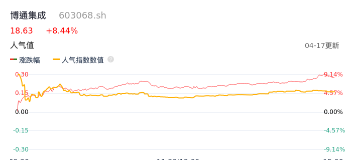 04月17日,博通集成收报18.63,股价涨幅8.44%,成交金额6756.16万元,换手率2.47%。