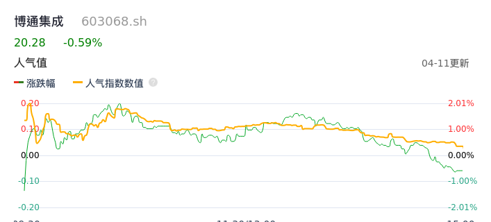 04月11日,博通集成收报20.28,股价涨幅-0.59%,成交金额4221.16万元,换手率1.37%。