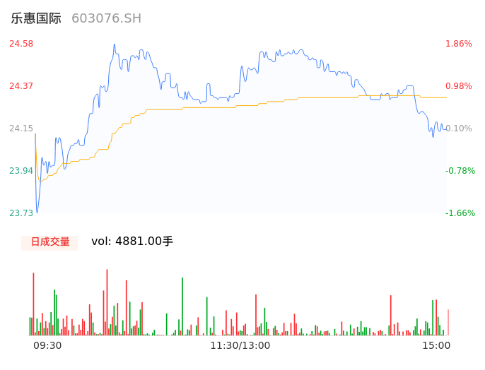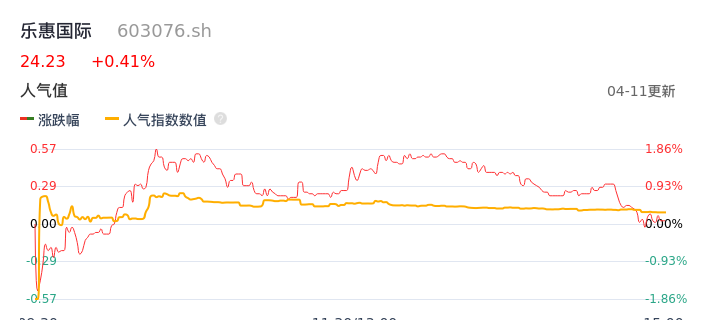 04月11日,乐惠国际收报24.23,股价涨幅0.41%,成交金额1186.28万元,换手率0.40%。