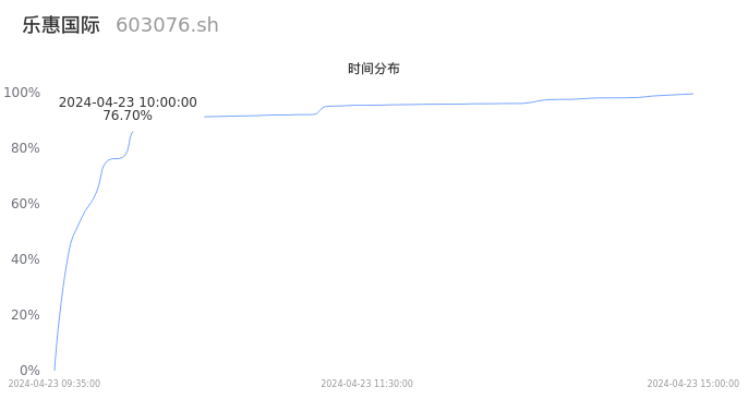 603076乐惠国际2024年04月23日成交4.43万手,成交金额1.22亿元,相较昨日放量2.03万手,换手率3.67%,成交清淡。
