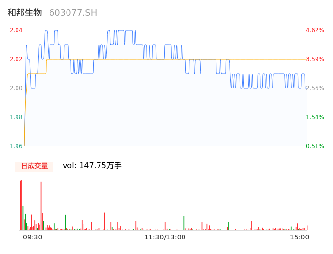 04月25日,和邦生物收报2.01,股价涨幅3.08%,成交金额2.98亿元,换手率1.67%。