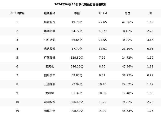从估值角度看:和邦生物最新市盈率PETTM为14.90,在行业内排名15/57,处于43.63分位。