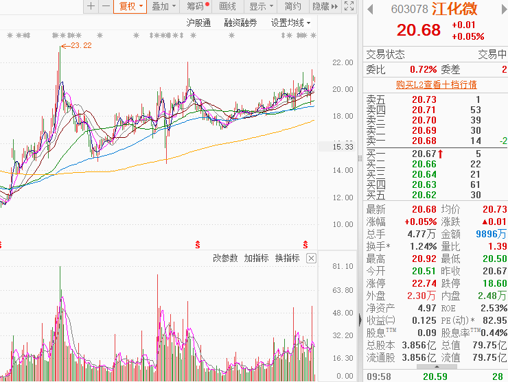 江化微是主攻电子化学品,是光刻胶和芯片制程中不可或缺的电子材料,近1年股价随“光刻胶+AI芯片”概念的炒作顺势上升(优于大市),阶段性底部逐步抬高,当前股价和估值对比业绩预期仍处于低估区间,后市增长空间巨大,十大流通股东中有多家公私募机构的身影,市值不到100亿深受游资和主力的喜爱,易炒作;近期开始放量震荡上行,各周期均线呈多头排列向上,股价站稳在各均线之上,股价有望一触即发。点击此处立即解锁“启动点“!
