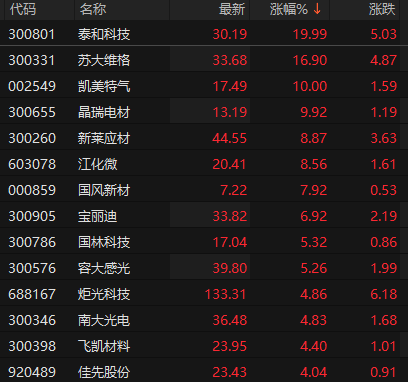 上证报中国证券网讯 9月3日早盘,光刻机、光刻胶概念震荡拉升,截至11时09分,泰和科技、凯美特气涨停,苏大维格涨超10%,晶瑞电材、新莱应材、江化微等跟涨。