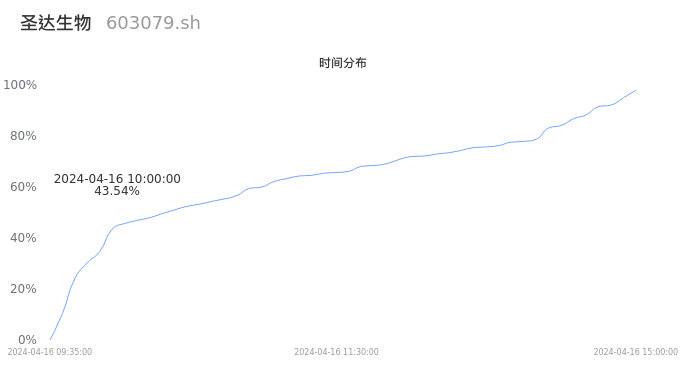 603079圣达生物2024年04月16日成交4.45万手,成交金额3982.73万元,相较昨日缩量1.79万手,换手率2.60%,成交清淡。