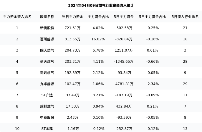 从主力资金流向来看,燃气行业今日主力资金流入1.75亿元,在所有申万二级行业中排名:25/131。