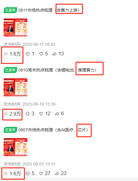 我们的内参都是提前一天大家能看到的,早间的直播是没开盘就讲的,近期这几个题材基本上有一点参与,应该都有不错的表现