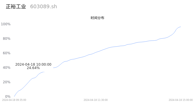 603089正裕工业2024年04月18日成交5.15万手,成交金额4581.83万元,相较昨日缩量2349手,换手率2.30%,成交清淡。