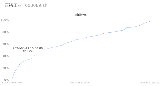 603089正裕工业2024年04月19日成交3.72万手,成交金额3198.21万元,相较昨日缩量1.43万手,换手率1.66%,成交清淡。