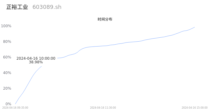 603089正裕工业2024年04月16日成交6.68万手,成交金额5375.93万元,相较昨日放量3235手,换手率2.98%,成交清淡。
