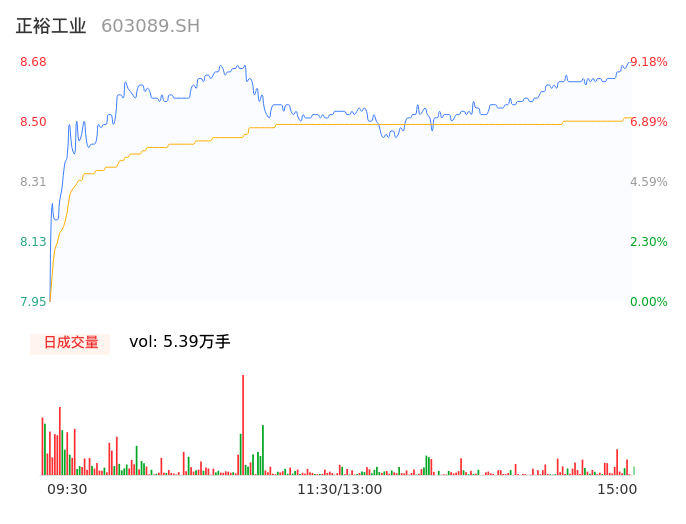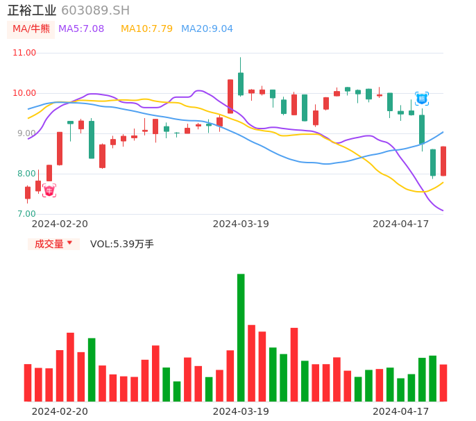 04月17日,正裕工业收报8.67,股价涨幅9.06%,成交金额4582.33万元,换手率2.41%。