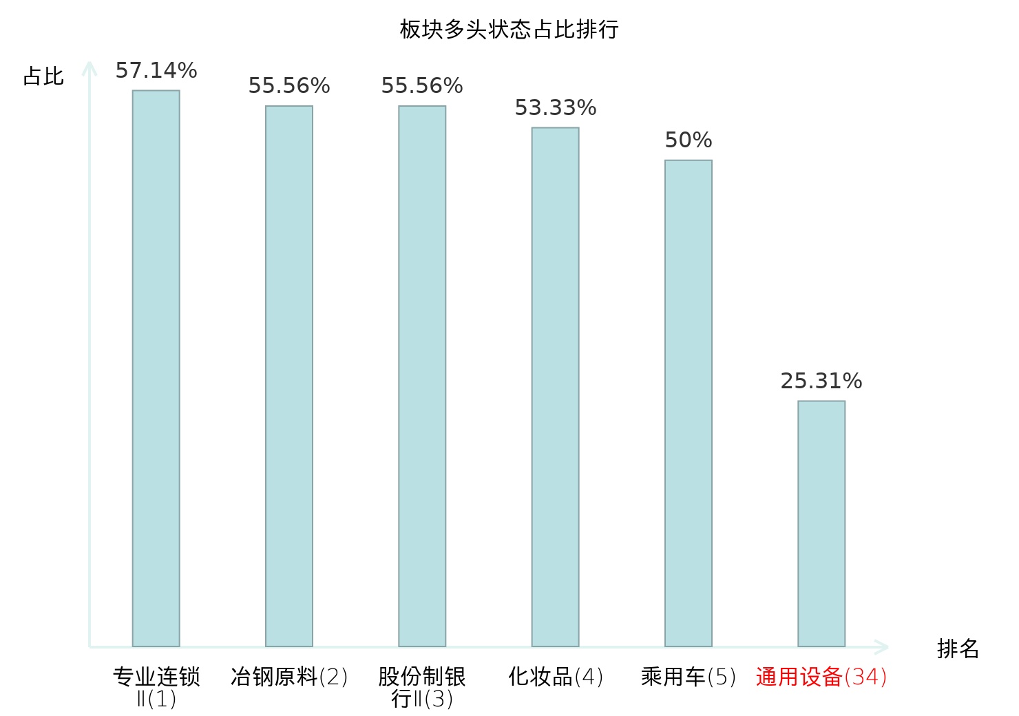 从主力宝信号数据分析,宏盛股份所属的通用设备板块中共有62只股票处于主力多头状态,主力多头状态占比在全行业中排名第34位,较昨日下降8位。较高的排名表明主力对于该板块的总体看多意愿较强,但此次排名的小幅下降可能反映了主力对该板块的态度有所变化。全市场所有行业板块中,专业连锁Ⅱ板块的主力多头状态占比最高,位居第一。房地产服务板块名次提升最快,较昨日上升了52位。这些排名变动揭示了主力资金在不同行业间的变动趋势,为投资者了解市场情绪和潜在投资机会提供了重要参考。