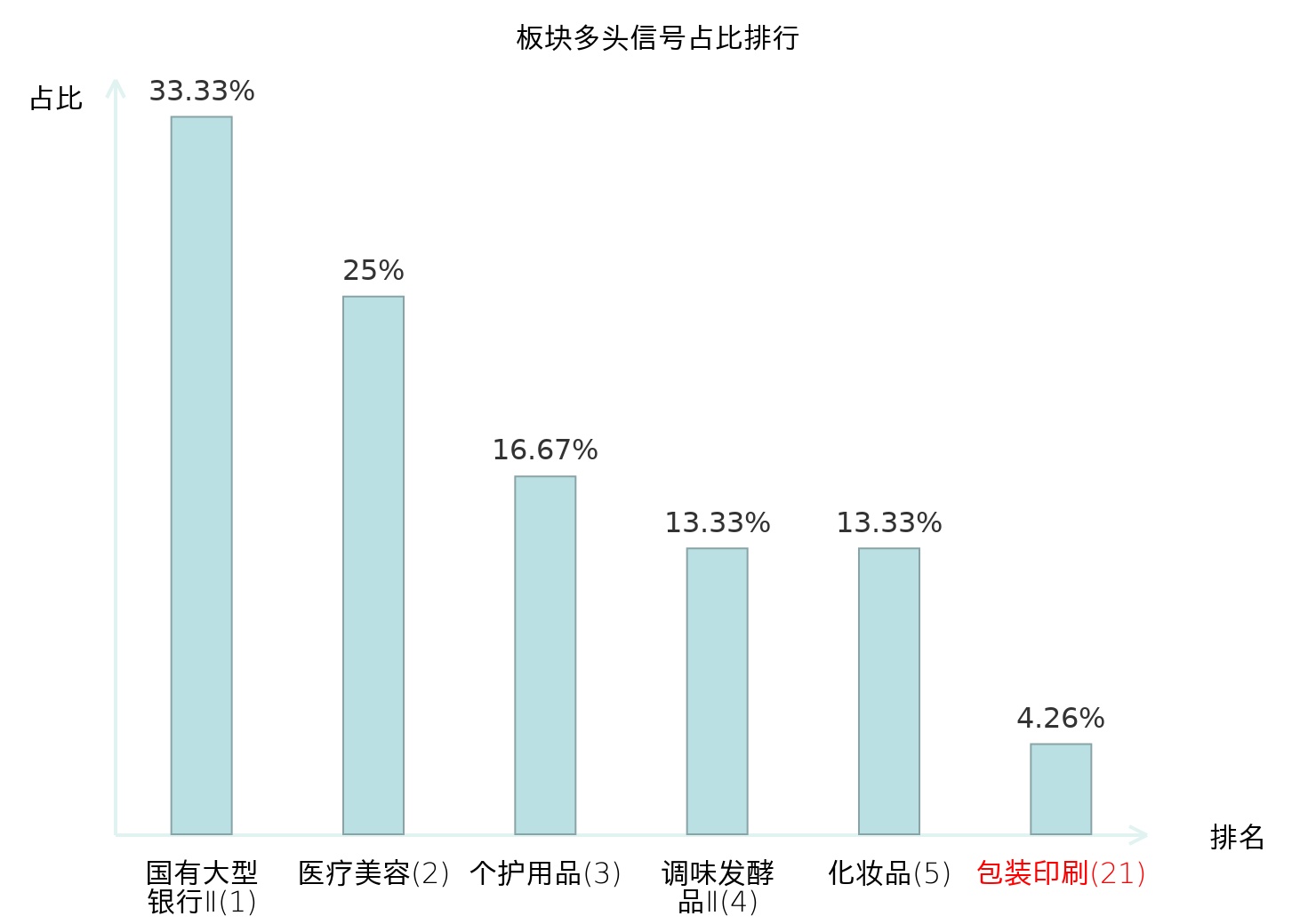 全市场所有行业板块中主力多头信号占比排名中,国有大型银行Ⅱ板块位居第一。医疗美容板块名次提升最快,较昨日上升125位。
