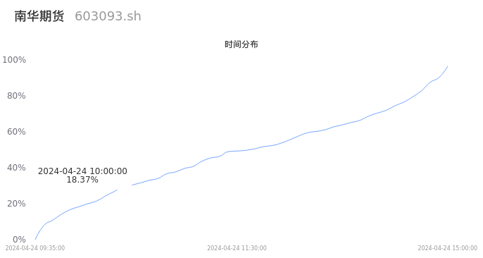 603093南华期货2024年04月24日成交4.04万手,成交金额4092.90万元,相较昨日缩量5812手,换手率0.66%,成交清淡。