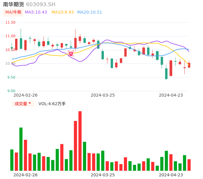04月23日,南华期货收报10.02,股价涨幅1.62%,成交金额4623.82万元,换手率0.76%。