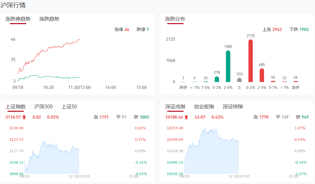 截至收盘,沪指涨0.03%,深成指涨0.43%,创业板指涨0.74%。