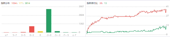 情绪上,今日涨停38跌停13,跌停家数在慢慢增加,说明市场空头力量依旧在发酵,所以,还是那句话,在大盘未能真正做出方向性选择之前,建议大家还是要继续控制好仓位,耐心等待。