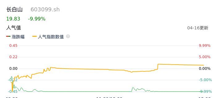 04月16日,长白山收报19.83,股价涨幅-9.99%,成交金额3.11亿元,换手率5.80%。