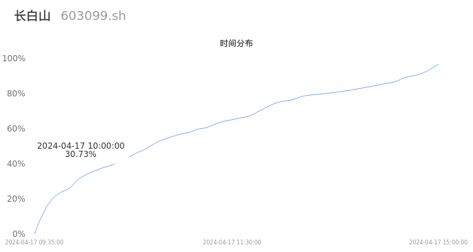 603099长白山2024年04月17日成交14.97万手,成交金额3.05亿元,相较昨日缩量5071手,换手率5.61%,成交清淡。