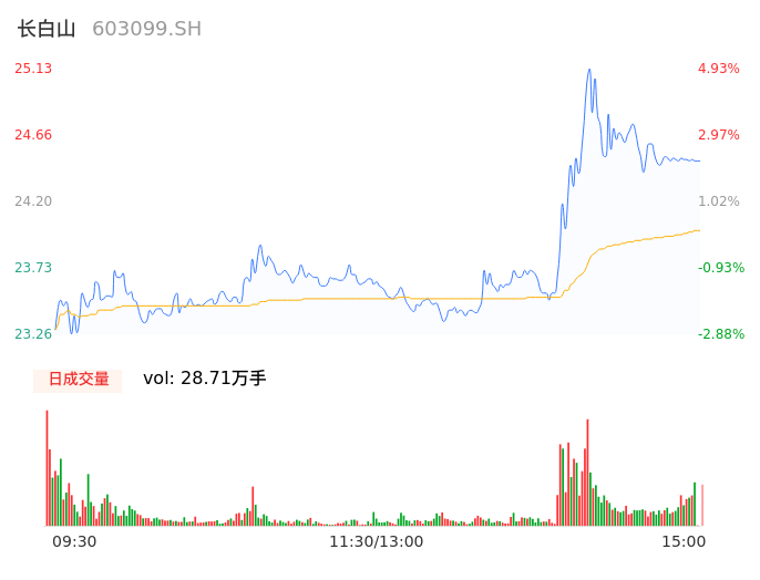 04月12日,长白山收报24.48,股价涨幅2.21%,成交金额6.89亿元,换手率10.77%。