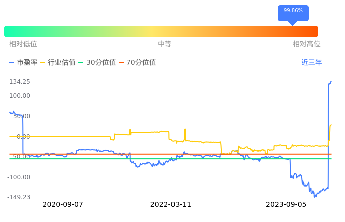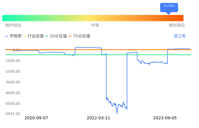 2023年09月05日,长白山下跌0.07%收于13.35,今日成交金额3664.21万元。下文将从市盈率PETTM、市净率PB、市现率3个角度去分析公司估值情况。