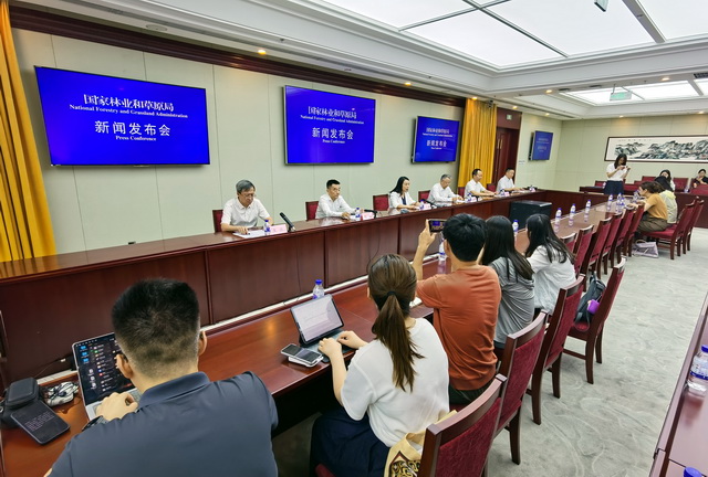 31日,国家林业和草原局新闻发布会现场。摄影/章轲