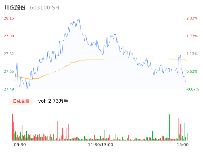 04月08日,川仪股份收报27.50,股价涨幅-0.04%,成交金额7577.20万元,换手率0.70%。