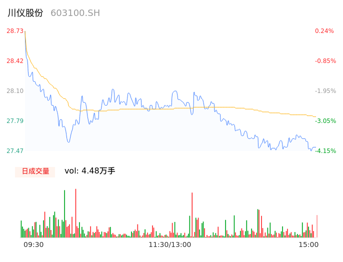 04月03日,川仪股份收报27.51,股价涨幅-4.01%,成交金额1.25亿元,换手率1.14%。