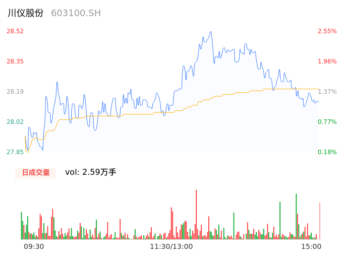 04月12日,川仪股份收报28.20,股价涨幅1.40%,成交金额7300.78万元,换手率0.66%。
