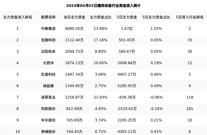 从主力资金流向来看,通用设备行业今日主力资金流入43.71亿元,在所有申万二级行业中排名:6/131。