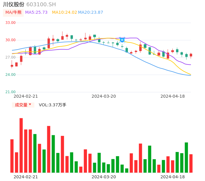 04月18日,川仪股份收报27.61,股价涨幅1.88%,成交金额9224.74万元,换手率0.86%。