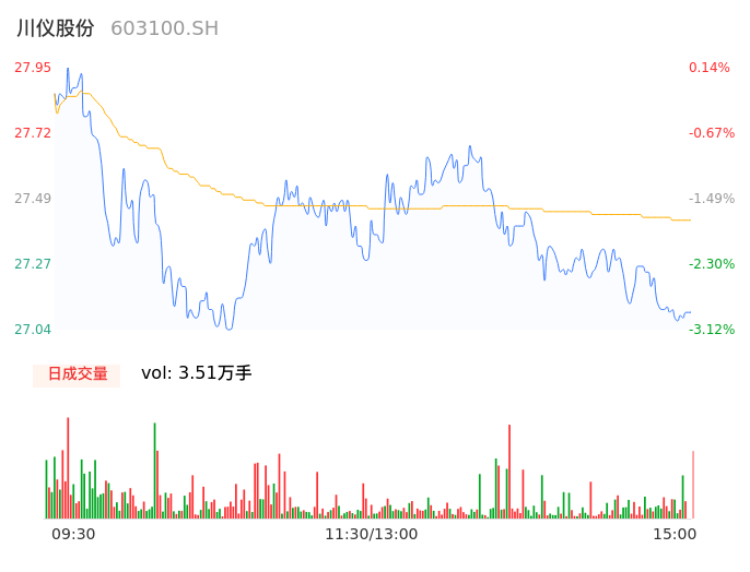 04月16日,川仪股份收报27.48,股价涨幅-1.54%,成交金额9610.49万元,换手率0.90%。