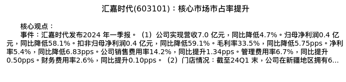 值得注意的是:2024年04月广发证券的嵇文欣分析师,首次发布关于汇嘉时代的研究报告,标题为:汇嘉时代(603101):核心市场市占率提升。