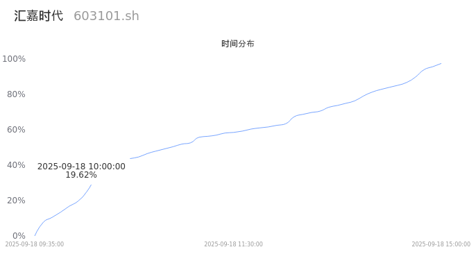 603101汇嘉时代2025年09月18日成交28.46万手,成交金额3.44亿,相较昨日放量4735手,换手率6.05%,成交清淡。
